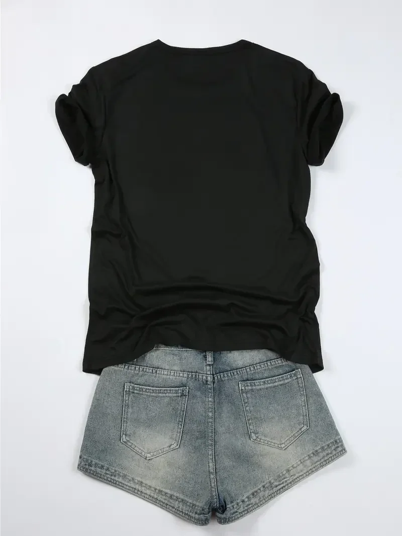 Atmungsaktives Rundhals Kurzarmshirt für den Sommer, Maschinenwaschbar & Vielseitige Freizeitkleidung, Bequemes Passform Shirt, Frühlingsoutfit, Weiche Textur