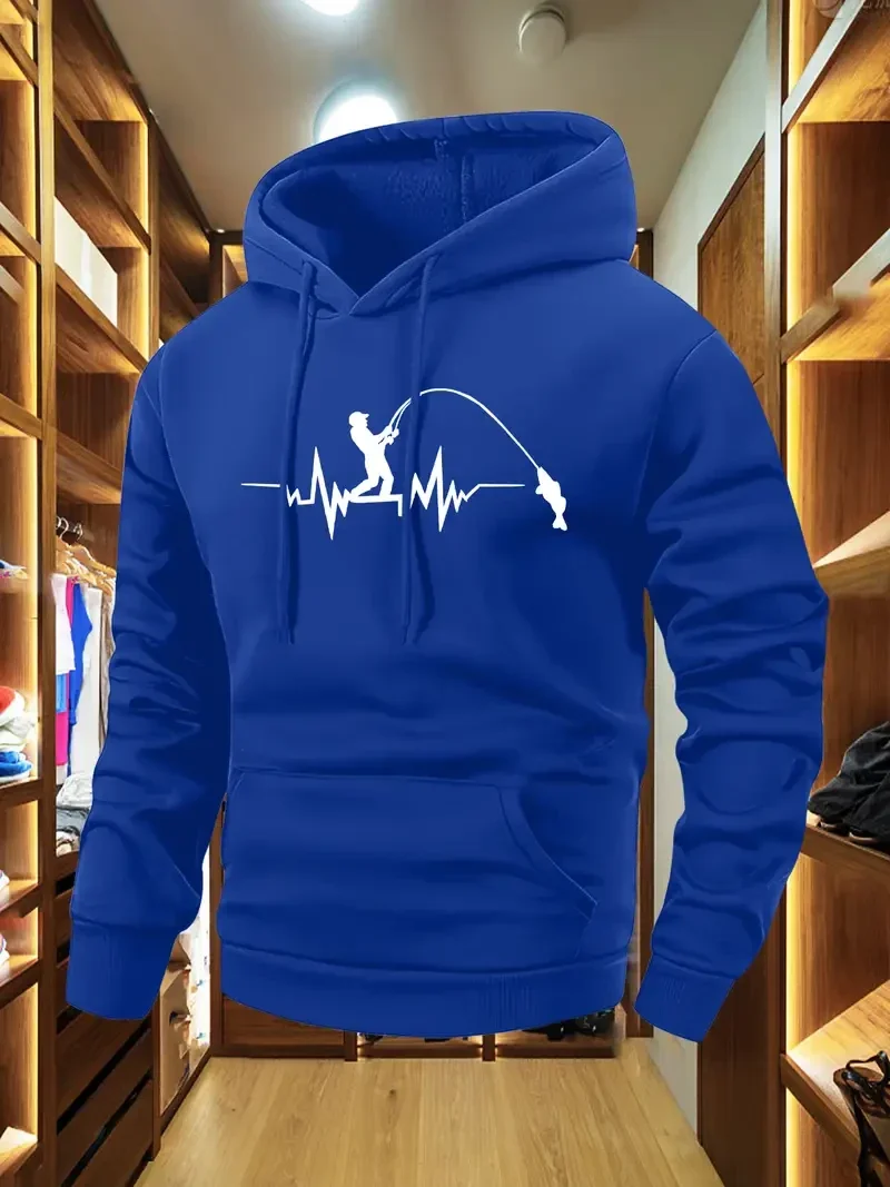Casual Angeln Druck Hoodie - Stilvolle Rote Pullover mit Herzschlag Linie Grafik, Langarm, Fronttasche, Perfekt für Herbst/Winter Outdoor Aktivitäten