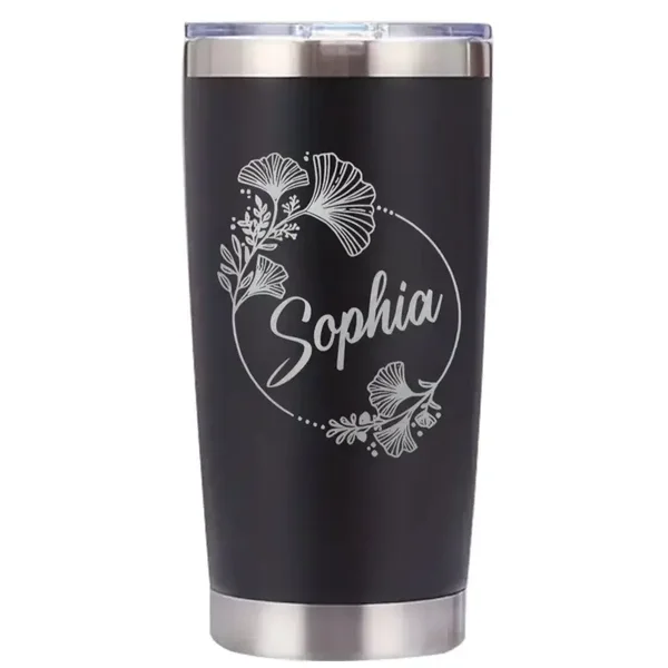 Personalisierte Edelstahl-Tumbler mit Ginkgo-Baum-Ast-Design